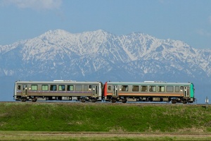 ←東能代、弘前 川部、青森→ 快速「リゾートしらかみ1号」8521D-8631D HB-E302-1+HB-E300-1+HB-E300-101(乗)+HB-E301-1 ボックス席をフラットにしたHB-E300-101。閑散期だったのか 日曜なのにボックス席はほぼ空いており、相席にもならず独占できた。 1人分の指定席料金しかかかっていない状態では破格の快適さ。 快速「リゾートしらかみ2号」8522D HB-E302-5+HB-E300-5+HB-E300-105+HB-E301-5 3524D-3526D GV-E401-20+GV-E402-20(乗) 左:GV-E402-20運転台仕切り部、右:H100-25前位側運転台仕切り部(2022/5/3撮影)。 大きな違いとして、GV-E400系列は運転台後部に遮光フィルムの貼り付けがなく 運転台の様子がよく見える。運転台の機器配置を比較してみたがGV-E400とH100で 細かなボタン配置や表示灯配置は相当違う。 左:GV-E401-20、右:H100-11(2025/2/9撮影)。 発電機関や主変換装置はGV-E400とH100で同じものを搭載しているようだが その周辺の機器配置は意外にも異なっている。 821D GV-E400-9+GV-E400-11+GV-E401-22+GV-E402-22 川部に停止したGV-E400-9以下4連。 2823D GV-E401-21+GV-E402-21 825D GV-E401-12+GV-E402-12+GV-E401-14+GV-E402-14 2826D GV-E401-22+GV-E402-22 827D GV-E400-10 鰺ヶ沢にて、3524DのGV-E402-20以下2連と並ぶGV-E400-10。 2829D GV-E401-18+GV-E402-18 □2両以下ツーマン列車運転事情 3524Dについて、日曜日も鰺ヶ沢までツーマン。 それ以外にもいくつかの2連以下列車がツーマンだったのを確認。 十二湖駅時刻表によると、326D,2525D(鰺ヶ沢まで)もツーマンであることを確認。 (弘前側ではもっと多いと思われる) 「通勤通学時間帯は2両以下でも車掌を乗せる」という取り扱いが 今でも生きています(北海道ではほぼ全滅)。 □その他 GV-E400とH100 乗ってみての比較 ・モータ音(インバータ音) …H100は客室内ではほぼ聞こえない。 GV-E400は台車上付近なら若干まともに聞こえる。 ・加速の鋭さ …五能線ではさほど鋭い加速を見せる機会がなく比較できず。 GV-E400に奥羽線架線下運用で乗ってみたい。 ・抑速ブレーキ …GV-E400には機能としてあるようだが使用を確認できず。 ・座席数 …H100が致命的に座席定員が少ないのと比較し、特にトイレなしGV-E402は デッドスペースが少なく、ある程度まともな座席数が確保できているように感じた。 ・速度種別 …確認できている限り、H100は一番上でC4。そのためキハ54、キハ143、キハ150のダイヤで走れない。 GV-E400のダイヤはタブレット表示になっており確認できなかったが、キハ110系列のダイヤで走ったり しているそうなので、どれくらいの速度種別で走っているのか気になるところ。