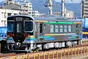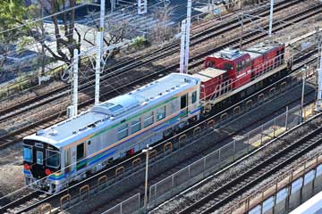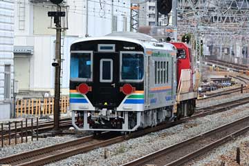 川崎車両株式会社兵庫工場より天竜浜名湖鉄道TKGTHG101が 新製出場しました。現在甲種輸送中です。 ←鷹取神戸貨物(タ)・川車 兵庫・吹田貨物(タ)→ 兵庫駅構内入換扱い(川崎車両1019発) THG101+DD200-20 川崎車両兵庫工場より出場(10:19) 小運転線8896レ(鷹取神戸貨物((タ)←兵庫) DD200-20+THG101 兵庫-鷹取神戸貨物(タ)(10:52) 屋根両側の突起物は何でしょうね? 8896レ-8860レ間合い 鷹取神戸貨物(タ)(11:10) JR神戸線8660レ(鷹取神戸貨物(タ)→吹田貨物(タ)・摩耶1329通過) THG101+DD200-20 摩耶通過(13:29) この先もご安全に!(^^)/~~