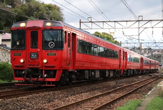 4/12 熊本← →別府 8093D キハ183-1002(乗)+キハ182-1002+キハ182-1001+キハ183-1001 #↑特急「あそぼーい!3号」 432D キハ200-1102+キハ200-102 1074D キハ185-16+キハ185-5 #↑特急「九州横断特急4号」 436D キハ200-5007+キハ200-7 #↑なのはな色 431D キハ220-207+キハ220-208 8094D キハ183-1002+キハ182-1002+キハ182-1001+キハ183-1001 #↑特急「あそぼーい!4号」 438D キハ220-207+キハ220-208 1075D キハ185-16(乗)+キハ185-5 #↑特急「九州横断特急5号」 宮地留置:キハ125-12+キハ125-18 1076D キハ185-1001+キハ185-7 #↑特急「九州横断特急6号」 #↓8094D キハ183-1002ほか4連 阿蘇