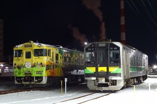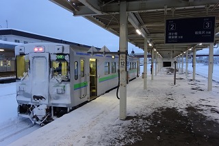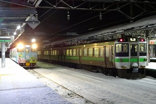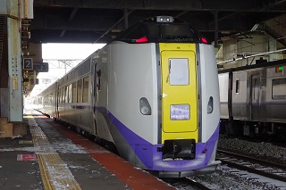 ←岩見沢 特急「北斗 3号」 3D キハ261-1207+キハ260-1207+キハ260-1403+キハ260-1327+キハ260-1317+キハ260-1328+キハ260-1108+キロ261-1108 特急「北斗 8号」 8D キハ261-1212+キハ260-1212+キハ260-1___+キハ260-1309+キハ260-1___+キハ260-1112+キロ261-1112 苫小牧を発車するキハ261-1212以下7連 特急「北斗13号」 13D キハ261-1225+キハ260-1225+キハ260-1311+キハ260-1313+キハ260-1310+キハ260-1115+キロ261-1115 1466D-1473D キハ40 1809(乗)+キハ150-103 1466D苫小牧到着後、運転所へ入区するキハ40 1809以下2連。 この右後ろにみえる運転所内のキハ40 1759、実はこの後出区し、苗穂方面へ回送されていた ※14:29頃、野幌駅付近を走行する函館本線上り回送列車 キハ40 1790+キハ40 1759を目撃しています。 岩見沢に到着したキハ40 1809以下2連と、227M到着後の721系F-4103編成+F-4203編成。 1467D-1472D キハ150-104 1470D キハ150-106(乗) 追分停車中のキハ150-106.土曜なので全ドア扱い。 □苫小牧駅側線留置(ドン・キホーテ側) ・11:05頃 キハ40 1720とH100が留置。後ろには入区中のキハ40 1809以下2連がおり、さらに 後ろには、実は出区待ちだったキハ40 1759以下2連も控えている。 ・17:00頃 キハ40 1720よりさらにドン・キホーテ側にH100-35留置。
