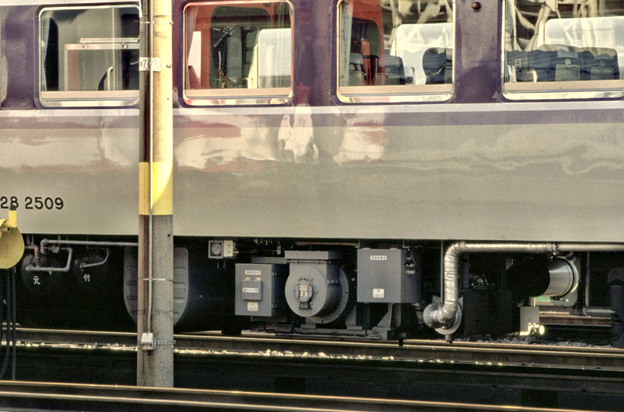 キハ282509の4VK-DM83の発電ユニットは換装されて静音化された。このため2500番台の特徴であった窓間の吸気口がなくなっている。