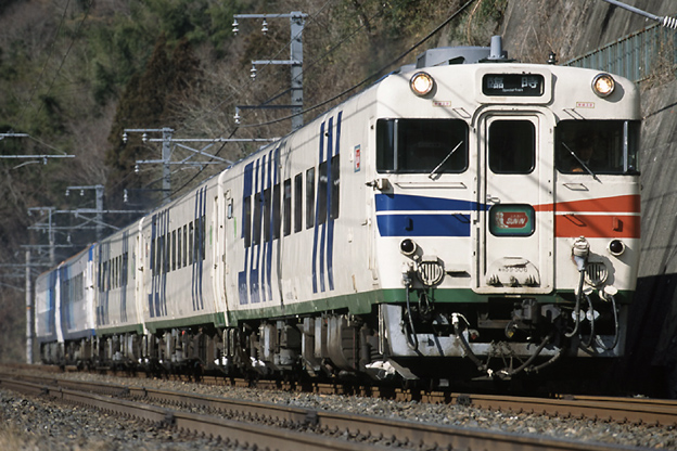 すんげー“だいせん”!! キハ651811+キハ65812+キハ651812+キハ65811+キロ59505+キロ59506 全車パノラミック顔というのもポイント高し! 山陰本線3731D 御来屋 2000/8/13
