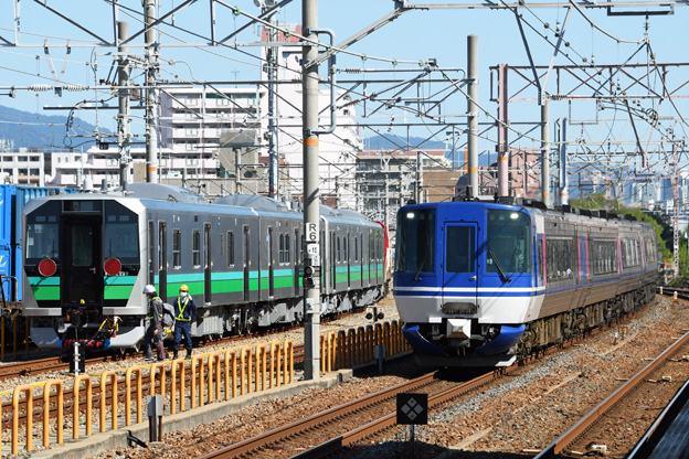 山陽本線8660レ:DD200-25+HB-E221-8+HB-E222-8+HB-E221-9+HB-E222-9、55D 特急“スーパーはくと5号”:HOT7021+HOT7033+HOT7043+HOT7054+HOT7005 鷹取 2025/10/23